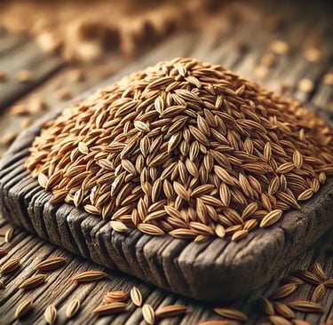 Cumin seeds are aromatic and earthy in flavor. Used whole or ground, they are essential for tempering curries, dals, and rice dishes.