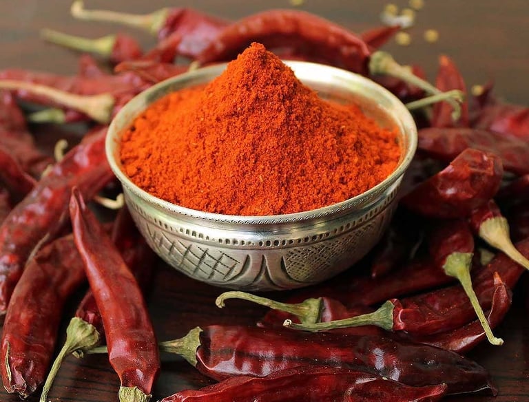 A fiery spice that enhances the taste, color, and aroma of food. Our red chilli powder is made from sun-dried chillies, ensuring rich color and authentic flavor.